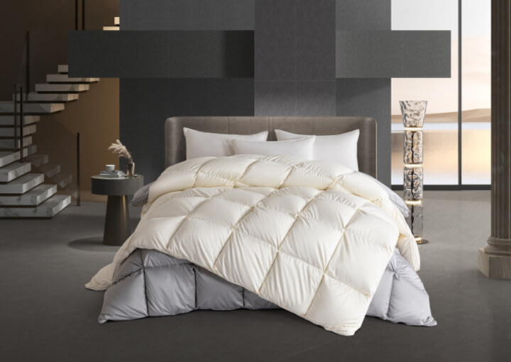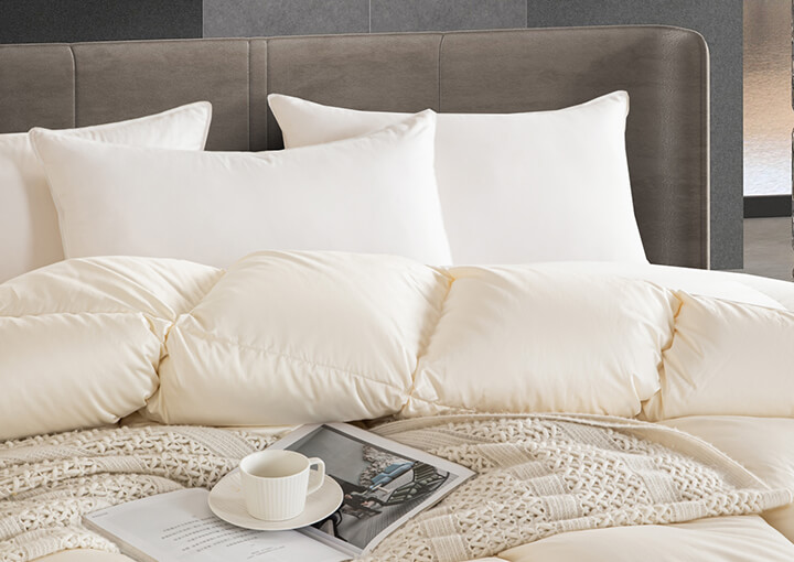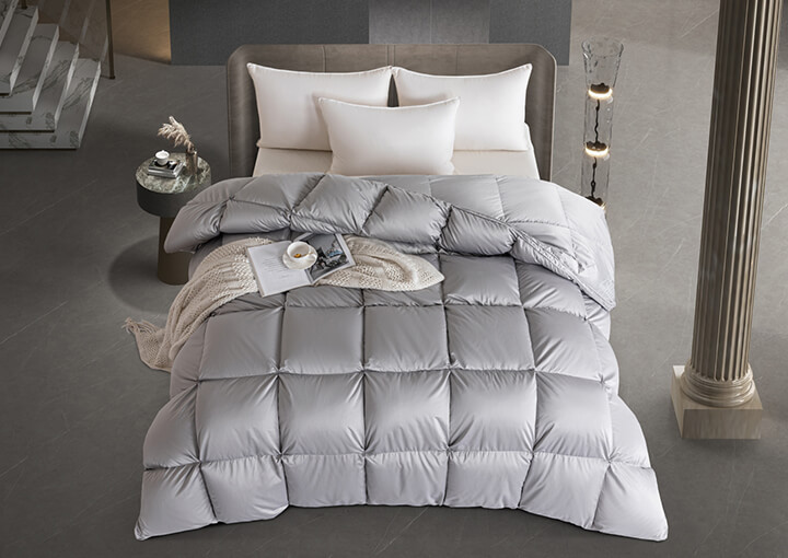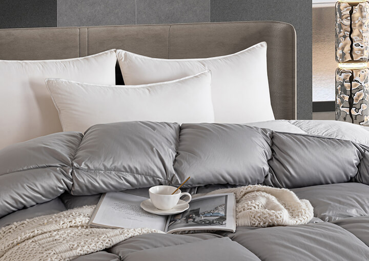 面包格加立衬设计,立体边双绳工艺,外加高达95%的充绒比例,让每个格子都饱满到这个程度,美观又有效地保留身体的热量,品质感拉满,满足您对羽绒被的需求。