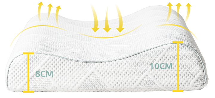 8cm仰睡时,枕头曲度托扶后颈贴合生理曲线,充分支撑放松颈椎使睡眠状态放松。